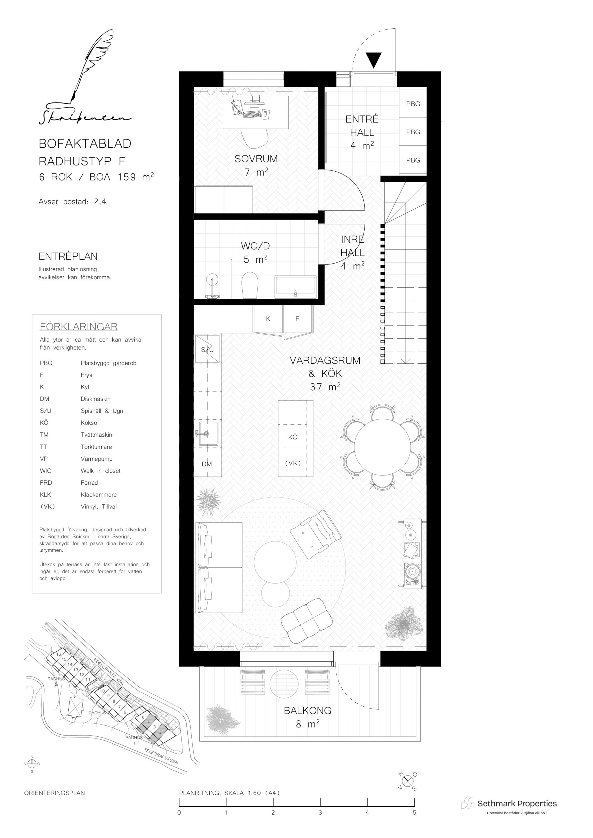 Den genomgående höga standarden märks i varje detalj. Köket, som är från Bogården Kök, är utrustat med vitvaror av högsta klass från SMEG, bänkskiva i kompositsten i Silestone, badrummen erbjuder en sober känsla med smarta lösningar och exklusiv granitkeramik i Bricmate Jura select Ivory. De platsbyggda snickerierna är unikt framtagna för projektet i såväl kök som hall. Färg- och materialpaletten är inspirerad av den nordiska naturens lugn, med jordnära toner i sten och trä som skapar en varm och inbjudande känsla.
