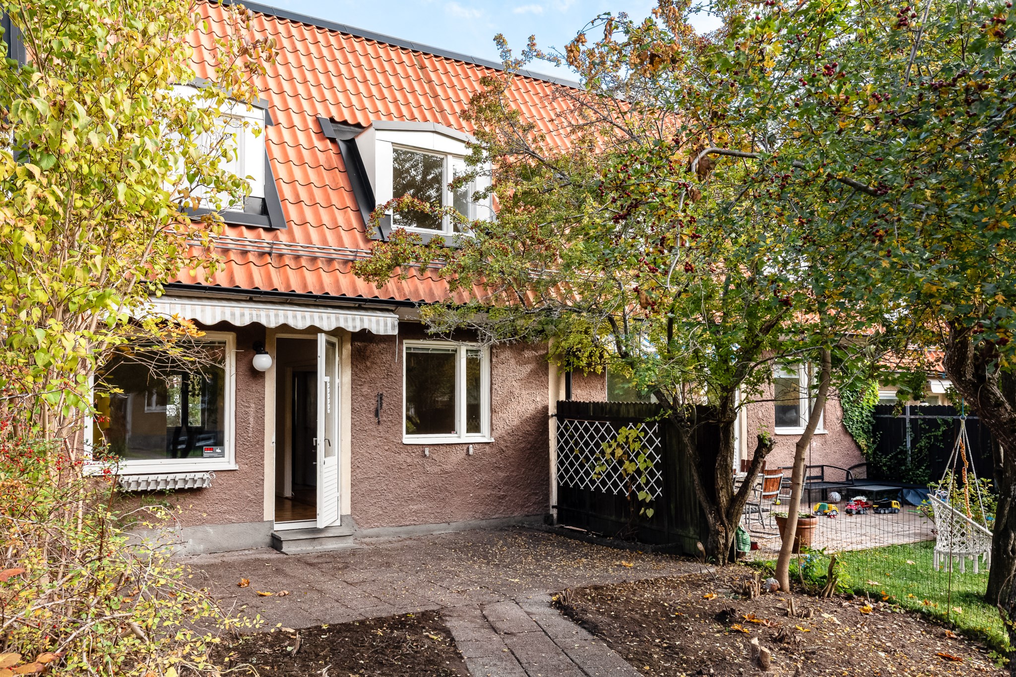 Detta underbara radhus är genomgående perfekt planerat med mycket genomtänkta rumsplaceringar härliga sällskapsytor med stort vardagsrum med fungerande öppen spis och charmigt arbetskök i 50-talsstil med tillhörande matrum(finns möjlighet att göra öppen planlösning). Från vardagsrummet når man husets grönskande och insynsskyddade trädgård som förlänger umgängesytorna ytterligare. På entréplan erbjuds även ett generöst tilltaget sovrum, gäst-wc, praktisk hall samt god förvaring i fast garderob. På övre plan finns ytterligare två stora och rogivande sovrum med härlig utsikt över området, ett rymligt badrum med duschplats och takfönster. Även övre plan erbjuder goda förvaringsmöjligheter i tre fasta garderober samt en rymlig kattvind om ca 15kvm.