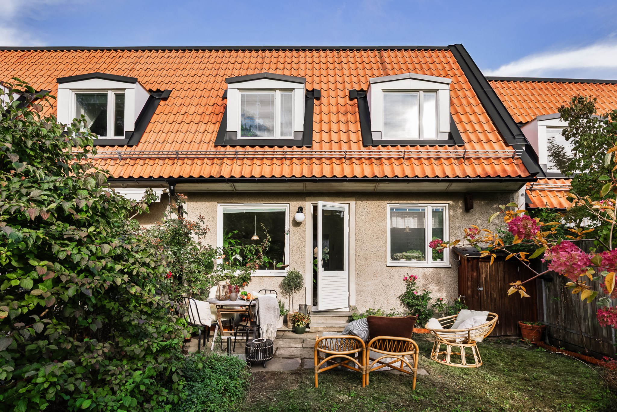 Detta underbara radhus är genomgående perfekt planerat med mycket genomtänkta rumsplaceringar härliga sällskapsytor med stort vardagsrum med fungerande öppen spis och charmigt arbetskök med tillhörande matrum (finns möjlighet att göra öppen planlösning mellan matrum och kök). Från vardagsrummet når man husets grönskande och insynsskyddade trädgård som förlänger umgängesytorna ytterligare. På entréplan erbjuds även ett generöst tilltaget sovrum, gäst-wc, praktisk hall samt god förvaring i fast garderob. På övre plan finns ytterligare två stora och rogivande sovrum med härlig utsikt över området, ett rymligt badrum med duschplats och takfönster. Övre plan erbjuder även goda förvaringsmöjligheter i tre fasta garderober samt en rymlig kattvind om ca 13kvm.